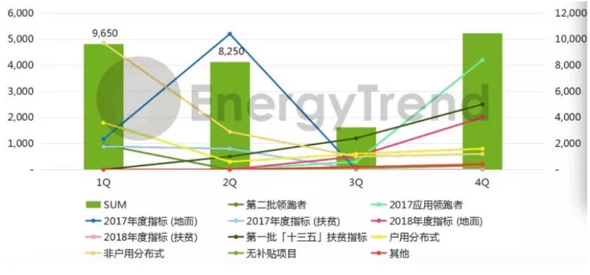 集邦新能源網(wǎng)EnergyTrend:31.6GW,各季度各類型光伏系統(tǒng)并網(wǎng)量預(yù)期如下圖(MW)