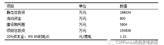 表:首航100MW熔鹽塔式項目投資構成估算表