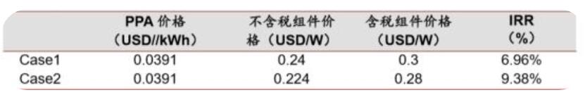 以中標(biāo)價(jià)格最低的0.0391 USD//kWh作為參考,按照第一年較高的25%關(guān)稅計(jì)算,在兩個(gè)不同項(xiàng)目中,含稅組件價(jià)格分別為0.3USD/W和0.28USD/W,項(xiàng)目IRR分別達(dá)到6.96%和9.38%。出口印度的項(xiàng)目?jī)?nèi)部收益率仍可維持較高水平,有一定的盈利空間。
