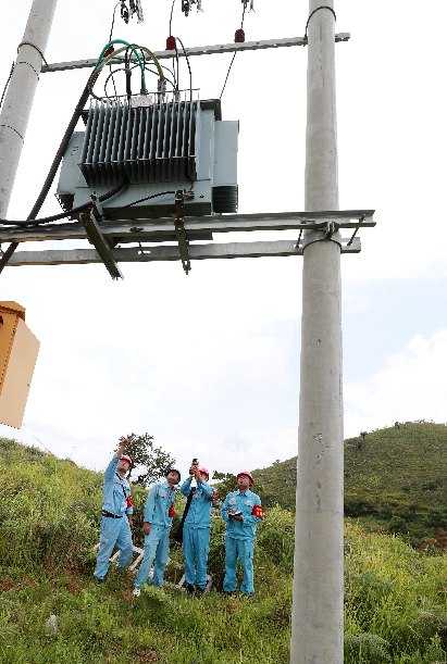 冊(cè)亨供電局“心意電”服務(wù)隊(duì)對(duì)光伏發(fā)電站的備用線路設(shè)備進(jìn)行巡檢服務(wù)。(盧關(guān)文攝)