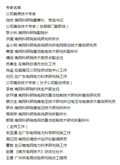 南方電網(wǎng)有限責(zé)任公司的首席技術(shù)專家和高級技術(shù)專家都是誰?