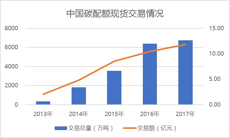圖  中國(guó)碳配額現(xiàn)貨交易情況