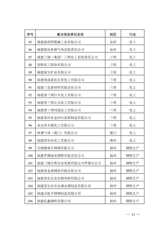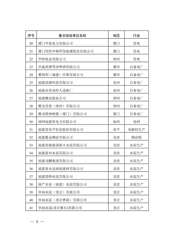 福建省2017年度碳排放配額分配方案出爐:255家納入配額管理的重點排放單位名單