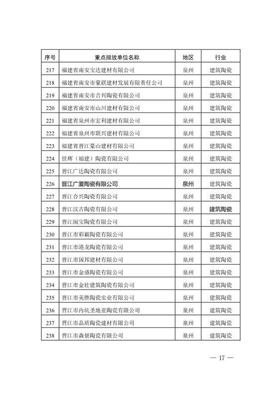 附件:1.福建省2017年度納入配額管理的重點排放單位名單
