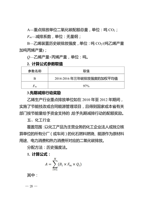 2017年重點排放單位配額實行免費分配,采用基準線法、歷史強度法相結(jié)合的方法計算。