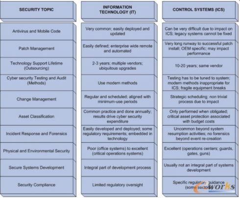 (3)技術(shù)支持周期:IT系統(tǒng)由于供應(yīng)商較多,升級(jí)方便,技術(shù)更新周期都很快,基本在2到3年;工控系統(tǒng)都是專用的供應(yīng)商,可能就一家或幾家,技術(shù)更新周期都在10到20年左右。