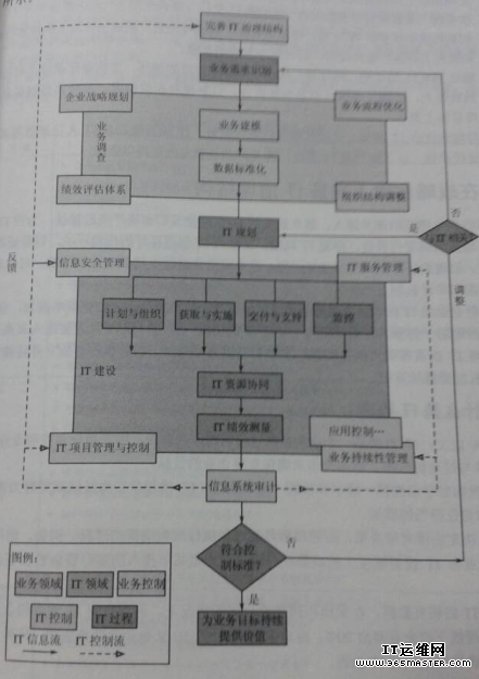 通俗的說(shuō)我們?cè)谝?guī)劃信息化時(shí),除了要關(guān)注IT技術(shù)外,還要建立能使IT正常運(yùn)轉(zhuǎn)的制度,或者稱為IT治理機(jī)制。正如公司需要治理一樣,IT也需要進(jìn)行治理,就是要從制度、標(biāo)準(zhǔn)、規(guī)范的角度來(lái)重新認(rèn)識(shí)IT問(wèn)題并完善IT治理機(jī)制,這是目前走出IT建設(shè)誤區(qū)的良方。IT治理是國(guó)際IT領(lǐng)域中的一個(gè)新的概念,用于描述企業(yè)或政府是否采用有效的機(jī)制,使IT的應(yīng)用能夠完成組織賦予它的使命,同時(shí)平衡信息技術(shù)與過(guò)程的風(fēng)險(xiǎn),確保實(shí)現(xiàn)組織的戰(zhàn)略目標(biāo)。