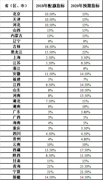 各省級行政區(qū)域2018年非水電可再生能源電力配額指標(biāo)