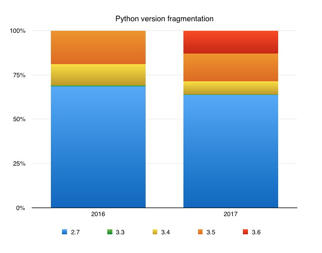 Python去年就在黑客新聞和各種論壇上受到了很多關(guān)注,盡管Python 3 會(huì)在2008年發(fā)布,但是仍有超過70%的商業(yè)項(xiàng)目使用 2.7版本。