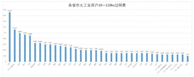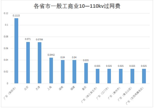 注:部分省市公布的輸配電價中,一般工商業(yè)沒有110KV輸配電價,故10KV至110KV過網(wǎng)費不能兩者直接相減,得另行計算。