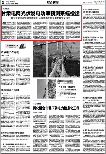 12月9日,由國網(wǎng)電力科學(xué)研究院承建的具有短期和超短期預(yù)測功能的甘肅省首套電網(wǎng)光伏發(fā)電功率預(yù)測系統(tǒng)通過驗(yàn)收并投入運(yùn)行,這套系統(tǒng)將大幅提高光伏發(fā)電大規(guī)模并網(wǎng)安全水平,促進(jìn)電網(wǎng)安全管理和經(jīng)濟(jì)調(diào)度,項(xiàng)