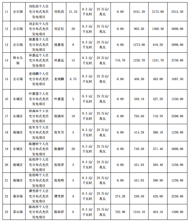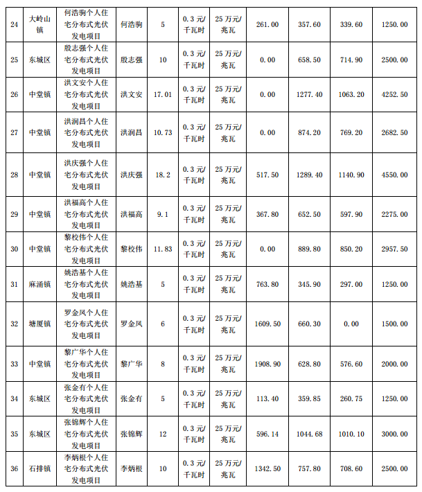 廣東東莞市前四批分布式光伏項(xiàng)目補(bǔ)助名單(2016-2017Q1)