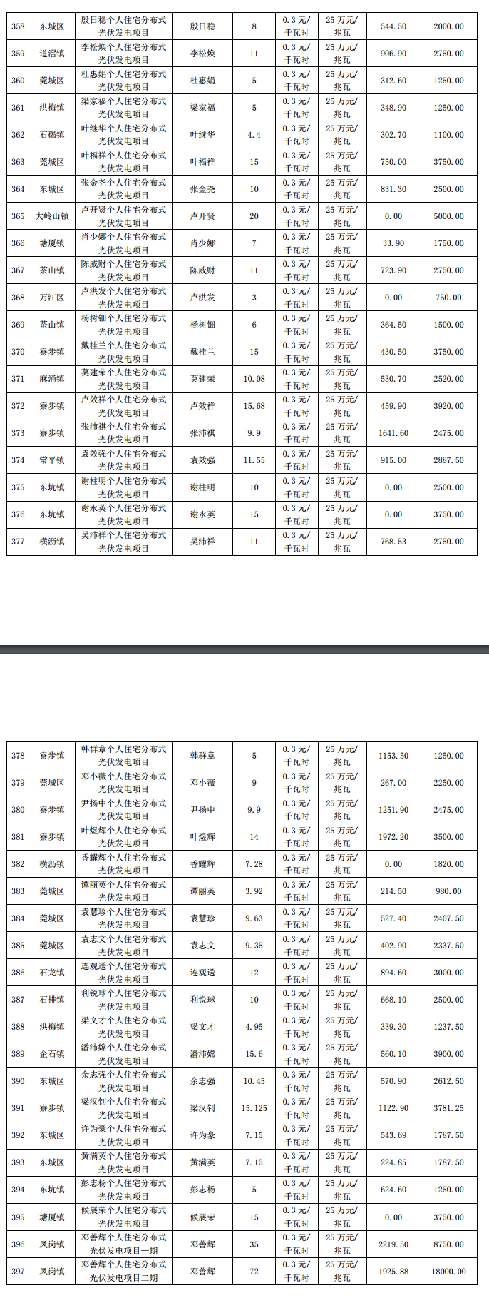 廣東東莞市前四批分布式光伏項(xiàng)目補(bǔ)助名單(2016-2017Q1)