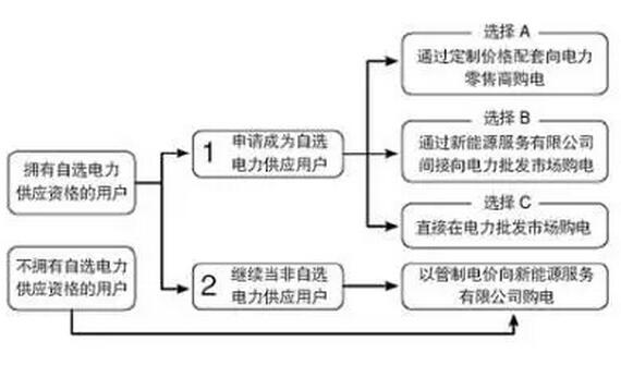 目前,新加坡電力零售市場仍處于部分放開的狀態(tài)。根據(jù)年用電量,新加坡的電力用戶被分為擁有自選電力供應(yīng)資格的用戶和不擁有自選電力供應(yīng)資格的用戶。前者可以通過定制價格配套向電力零售商購電,或者選擇通過新能源服務(wù)有限公司(傳統(tǒng)供電公司)間接向電力批發(fā)市場購電,或者直接在電力批發(fā)市場購電,或者與后者一樣,繼續(xù)以管制定價向新能源服務(wù)有限公司購電;而后者只能以管制定價向新能源服務(wù)有限公司購電(見圖1)。