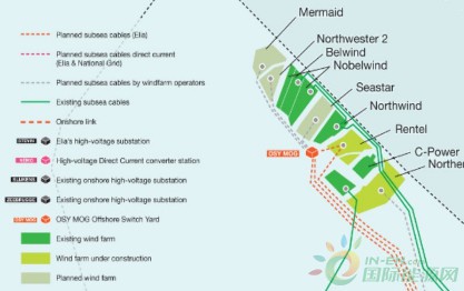 新的電力線路將從現(xiàn)有的325.2兆瓦的C-Power,216兆瓦的Northwind,165兆瓦的Nobelwind和165MW的Belwind海上風(fēng)電場,以及在建和規(guī)劃中的風(fēng)電設(shè)施傳輸電力。其中包括309兆瓦的Rentel,370兆瓦的Norther和246MW的Mermaid風(fēng)電場。