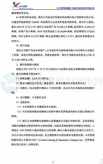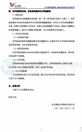 北方國際近日稱,公司擬投資建設(shè)、運(yùn)營克羅地亞塞尼156MW風(fēng)電項(xiàng)目,項(xiàng)目總裝機(jī)容量為 156MW,主要設(shè)備包括 39 臺4MW 風(fēng)機(jī),預(yù)計(jì)總投資