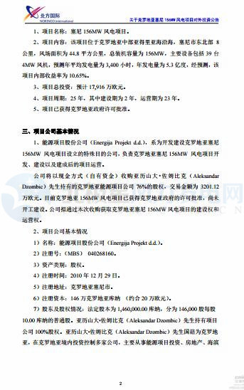 北方國際近日稱,公司擬投資建設(shè)、運(yùn)營克羅地亞塞尼156MW風(fēng)電項(xiàng)目,項(xiàng)目總裝機(jī)容量為 156MW,主要設(shè)備包括 39 臺4MW 風(fēng)機(jī),預(yù)計(jì)總投資為17916萬歐元??肆_地亞能源項(xiàng)目股份公司(Energija Projektd.d.,以下簡稱“項(xiàng)目公司”)負(fù)責(zé)該項(xiàng)目的開發(fā)、建設(shè)以及建成后的項(xiàng)目運(yùn)營。