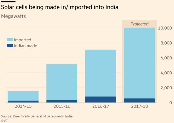 考慮到印度總理納倫德拉•莫迪(Narendra Modi)的政府制定的、到2022年時建成100吉瓦新增太陽能發(fā)電能力的宏偉計劃,印度保障措施總局的方案顯得尤為敏感。