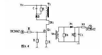 當(dāng)輸出電路短路或過流,變壓器原邊電流增大,R3兩端電壓降增大,③腳電壓升高,UC3842⑥腳輸出占空比逐漸增大,③腳電壓超過1V時,UC3842關(guān)閉無輸出。