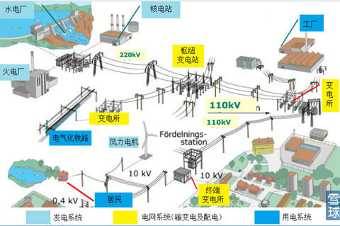 電力系統(tǒng)可分為發(fā)電系統(tǒng)、輸變電系統(tǒng)、配電系統(tǒng)和用電系統(tǒng),其中輸變電系統(tǒng)和配電系統(tǒng)即一般所說的電網(wǎng)系統(tǒng)。 如圖