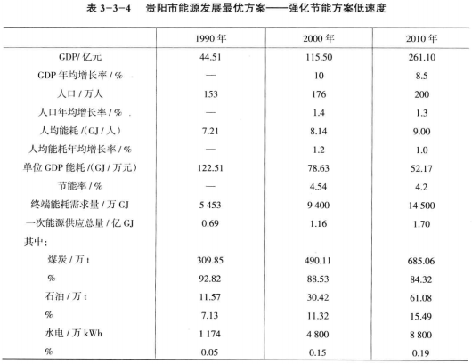 貴陽市能源發(fā)展最優(yōu)方案——強(qiáng)化節(jié)能方案低速度列于表3-3-4。