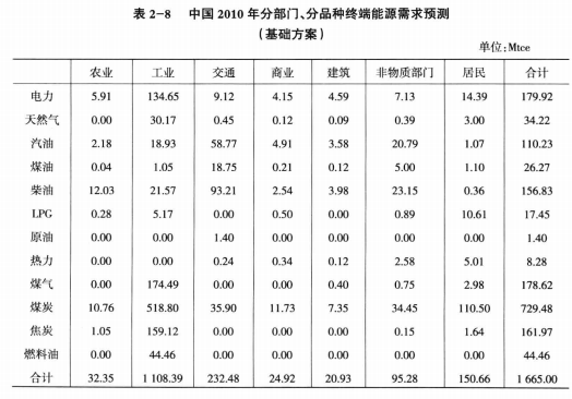 中國1995-2050年一次能源需求預測結果詳見表2-3,表2-4,表2-5,表2-6,中國終端能源需求預測詳見表2-7,表2-8,表2-9,表2-10,表2-11,表2-12,表2-13,表2-14,表2-15,表2-16,表2-17,表2-18。