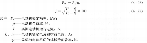 風(fēng)機(jī)機(jī)組的輸入功率測(cè)量和計(jì)算與異步電動(dòng)機(jī)相同。風(fēng)機(jī)軸功率是指電動(dòng)機(jī)輸送給風(fēng)機(jī)的功率,它可以采用電流法或閃光轉(zhuǎn)速測(cè)定法等在現(xiàn)場(chǎng)測(cè)出,但難度和工作量較大,可采用實(shí)測(cè)電動(dòng)機(jī)運(yùn)行電流計(jì)算,即