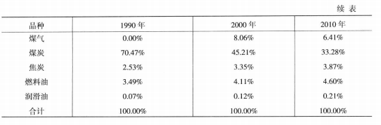 替代方案、低速度終端能源需求預(yù)測結(jié)果列于表2-2-25。與前而兩個方案預(yù)測結(jié)果一樣,替代方案、低速度終端能源構(gòu)成也得到相應(yīng)的優(yōu)化。與基礎(chǔ)方案相比,到2000年煤炭在終端能源構(gòu)成中減少8.17個百分點,到2010年減少18.91個百分點,分別減少41萬t與157萬t煤炭使用量。替代方案、低速度終端能源品種構(gòu)成請見表2-2-26。