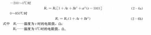 在金屬熱電阻溫度計(jì)中,鉑電阻溫度計(jì)測溫范圍最大,為-200~850℃。由于鉑電阻溫度計(jì)的阻值與溫度呈非線性關(guān)系,故其阻值隨溫度的變化關(guān)系通常分段處理,即