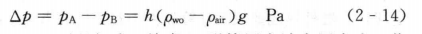 因為Pwo>>pair,可以忽略,故當U形管壓力計中用水為工作液時,壓差為