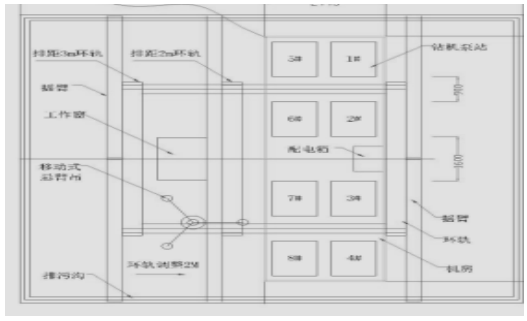 平臺(tái)中部開(kāi)孔,便于設(shè)備、材料的運(yùn)輸。開(kāi)孔尺寸請(qǐng)參照已提供的鉆機(jī)外形尺寸來(lái)定,在不使用時(shí)用蓋蓋住,要求所用的蓋要能承受鉆機(jī)最大件的重量。
