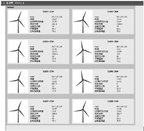 例如2012年7月1日統(tǒng)計總體情況:平均風(fēng)速14米/秒,理論每臺風(fēng)機發(fā)電功率接近1500千瓦,33臺共計4.95萬千瓦。而現(xiàn)華銳33臺風(fēng)機實際發(fā)電功率不到2萬千瓦,同一時刻吉林長嶺風(fēng)電場二期(其中一臺故障)發(fā)電功率達到4.5萬千瓦,兩期發(fā)電功率相差約2.5萬千瓦。一期風(fēng)機與理論發(fā)電功率差距太大,主要原因是齒輪箱溫度高影響發(fā)電量。齒輪箱溫度上限為75℃,超過此溫度風(fēng)機自動減負荷至額定負荷一半,如果溫度上升到80℃,風(fēng)機只能發(fā)至額定負荷五分之一左右。監(jiān)控畫面取得數(shù)據(jù)如下: