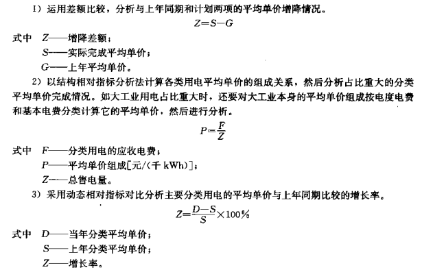 (2)售電平均單價(jià)的分析。售電平均單價(jià)是計(jì)算售電量每千千瓦時(shí)的平均銷售單位價(jià)格,衡量供電部門經(jīng)營(yíng)狀況的一項(xiàng)重要經(jīng)濟(jì)指標(biāo)。由于售電平均單價(jià)是反映經(jīng)營(yíng)成果的指標(biāo),既是數(shù)量指標(biāo),也是質(zhì)量指標(biāo)。平均電價(jià)增高,則應(yīng)收電費(fèi)收入增多,這時(shí)供電企業(yè)的利潤(rùn)增長(zhǎng),否則相反。所以這是關(guān)系到供電部門經(jīng)營(yíng)成果的一個(gè)重要指標(biāo)。