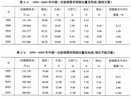 中國1995-2050年一次能源需求預(yù)測結(jié)果詳見表2-3,表2-4,表2-5,表2-6,中國終端能源需求預(yù)測詳見表2-7,表2-8,表2-9,表2-10,表2-11,表2-12,表2-13,表2-14,表2-15,表2-16,表2-17,表2-18。