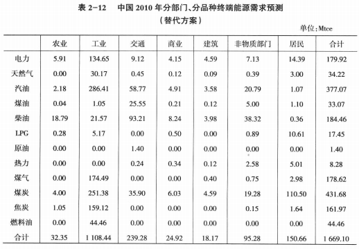 4)根據(jù)能源消費(fèi)結(jié)構(gòu)現(xiàn)狀考慮各種能源供應(yīng)的可能性,從終端用能設(shè)備發(fā)展規(guī)劃人手,確定各種能源品種的需求增長趨勢,從而預(yù)測能源需求的品種構(gòu)成。