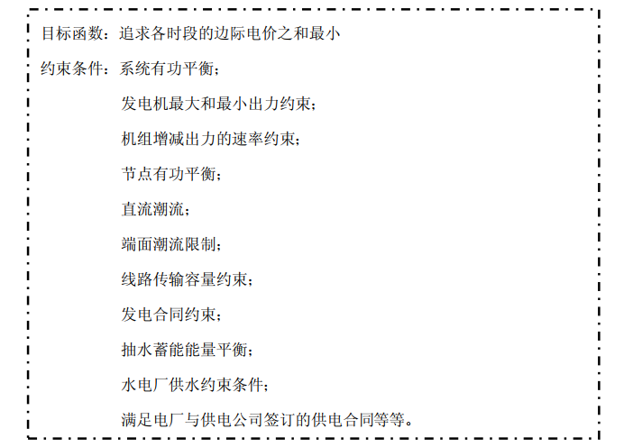2、以短期電量市場(chǎng)中的總購(gòu)電費(fèi)用最低為目標(biāo),并考慮所有機(jī)組約束條件和電網(wǎng)約束條件,以保證經(jīng)濟(jì)規(guī)律和電網(wǎng)的運(yùn)行規(guī)律通過(guò)有約束的優(yōu)化問(wèn)題得到統(tǒng)一的解決。