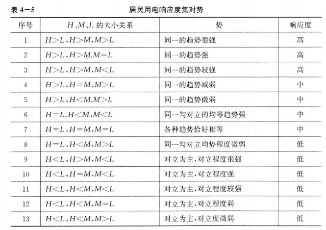 將全天用電時(shí)間分為12個(gè)時(shí)段,根據(jù)工業(yè)用戶用電設(shè)備的調(diào)節(jié)程度將不同時(shí)段對(duì)各種用電設(shè)備的調(diào)節(jié)情況分為高響應(yīng)( H)、中響應(yīng)(M)、低響應(yīng)(L)。工業(yè)用戶在12個(gè)時(shí)段調(diào)節(jié)度情況及沒(méi)備負(fù)荷權(quán)重如表4 -18所示。