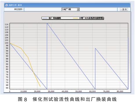 庫(kù)信息.該系統(tǒng)還建立了催化劑壽命預(yù)測(cè)模型,并能根據(jù)當(dāng)前SCR脫硝效率、系統(tǒng)投運(yùn)時(shí)間、進(jìn)出口NO。濃度等實(shí)時(shí)信息對(duì)催化劑進(jìn)行性能評(píng)價(jià)