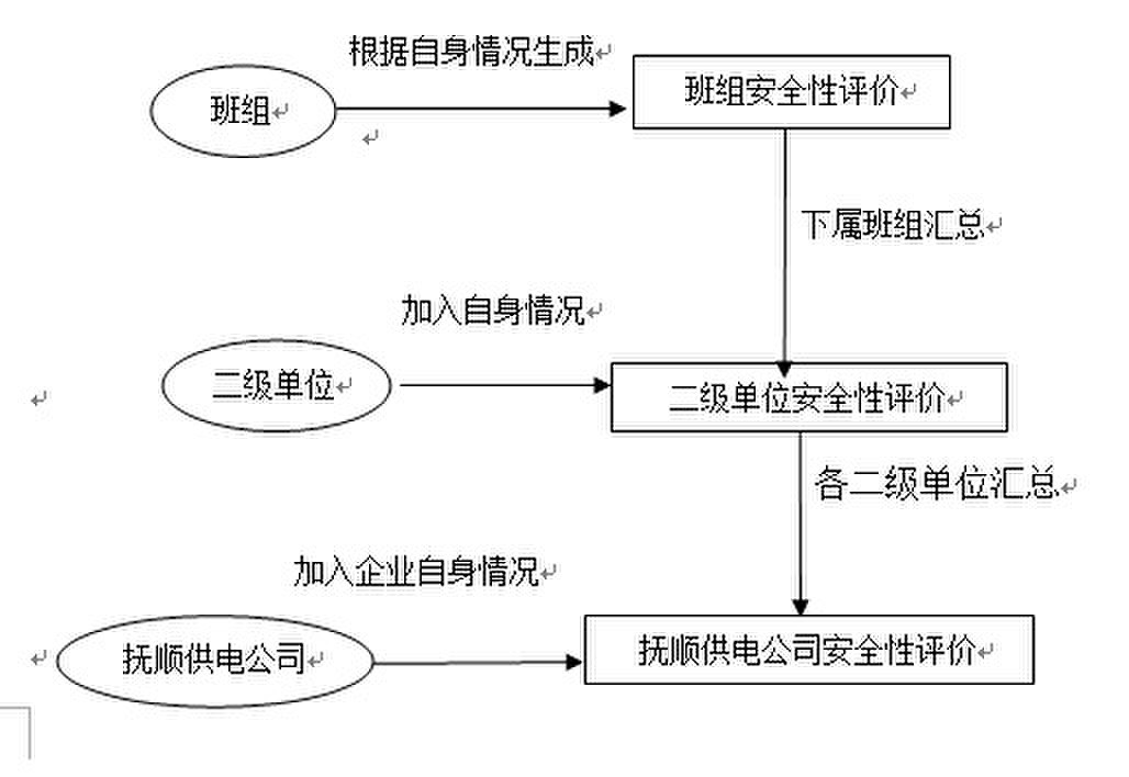 工作人員到現(xiàn)場(chǎng)對(duì)生產(chǎn)設(shè)備等進(jìn)行巡視發(fā)現(xiàn)1#變壓器漏油——在安全性評(píng)價(jià)系統(tǒng)中填寫本班組的問題及整改措施表——打電話通知上級(jí)單位(即二級(jí)單位)——二級(jí)單位在安全性評(píng)價(jià)系統(tǒng)中直接調(diào)用此班組的問題及整改措施表——查看此項(xiàng)問題——利用系統(tǒng)功能匯總生成本單位系統(tǒng)問題及整改措施表——總局在系統(tǒng)中直接查看此項(xiàng)問題——匯總所有單位問題,系統(tǒng)自動(dòng)生成總局問題及整改措施表。