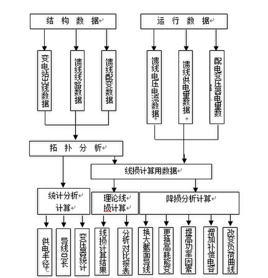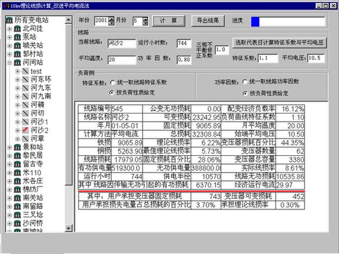 器數(shù)量、總?cè)萘康染€路統(tǒng)計數(shù)據(jù),⑤高計用戶的變壓器損耗,以及其在總損耗中的比重,⑥線路的經(jīng)濟運行參數(shù)有最佳理論線損率,配變綜合經(jīng)濟負載率等。