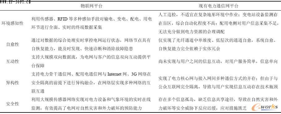 如表1 所示,面向智能電網(wǎng)的物聯(lián)網(wǎng)平臺相較于現(xiàn)有電力通信網(wǎng),在環(huán)境感知性、自愈性、互動性和安全性等方面都具有較大優(yōu)勢,而這些優(yōu)勢無疑是現(xiàn)有電網(wǎng)向著信息化、自動化和互動化的智能電網(wǎng)邁進(jìn)的根本保障。