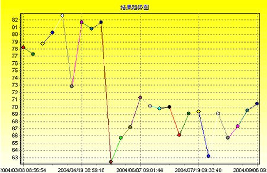 在我廠現(xiàn)在應(yīng)用的點(diǎn)檢管理系統(tǒng)中,已經(jīng)提供了折線圖的輔助分析方法。如下面是2004年3月至9月,一號(hào)汽輪機(jī)#1軸承#1烏金溫度的點(diǎn)檢結(jié)果數(shù)據(jù)折線圖。