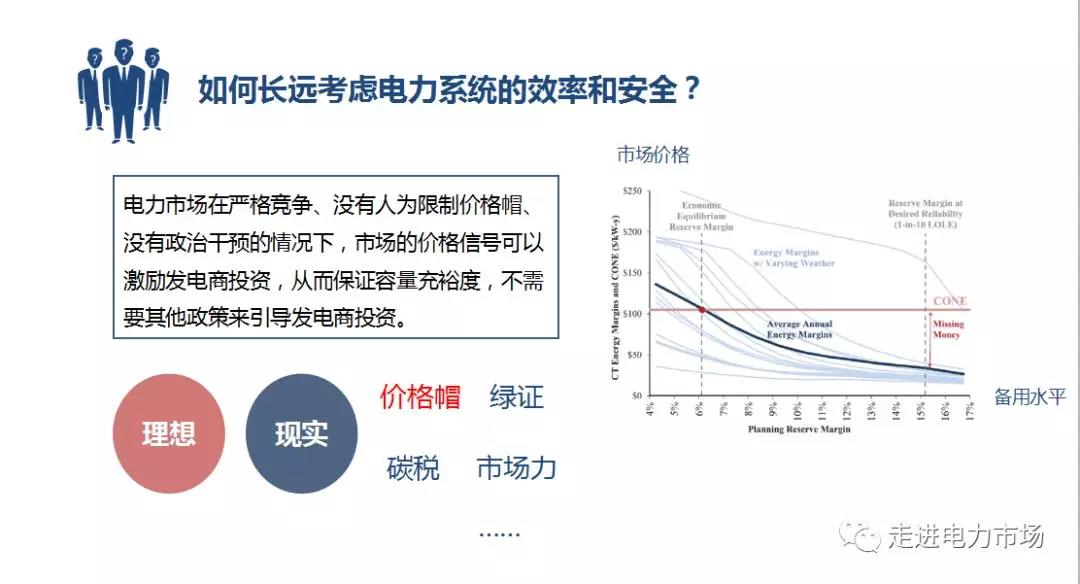 我們?yōu)槭裁从懻撨@個(gè)問題?其實(shí)是因?yàn)榻ㄊ袌龊笫切枰ゼ?lì)長期可靠運(yùn)行,昨天我們也討論過這個(gè)問題,大部分用戶將停電損失放到第一位,他們甚至認(rèn)為節(jié)約一點(diǎn)用電成本對他們來說并不是最主要的關(guān)注的問題,更想要的是穩(wěn)定的供電,理想的情況下按照市場來說它是可以通過市場的方式,這只無形的手,去激勵(lì)發(fā)電商投資保證供需平衡。