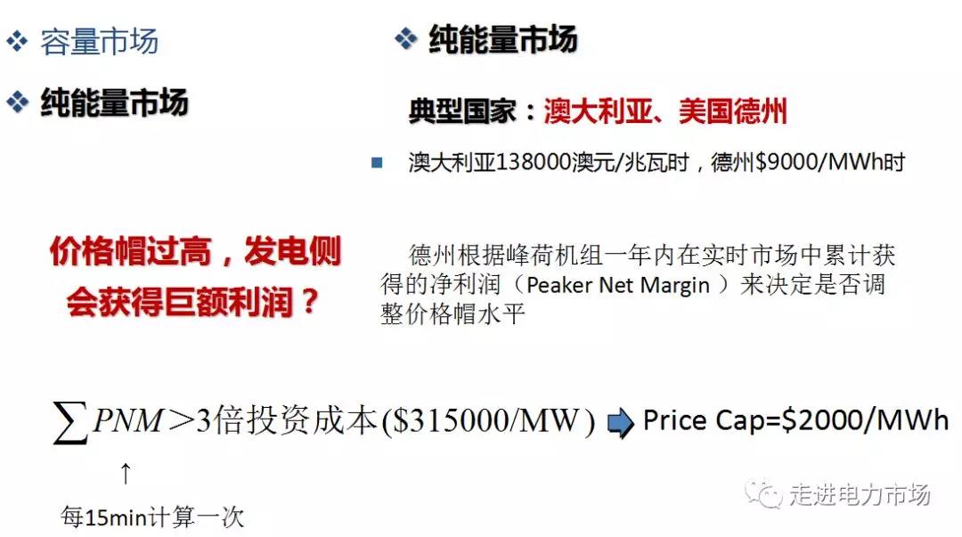 其實(shí)他們雖然說設(shè)立的非常高的價(jià)格帽,但實(shí)際上,像德州,并不會(huì)讓市場持續(xù)一直是這么高的價(jià)格帽,機(jī)組就可以有特別巨額的利潤。德州每15min計(jì)算一個(gè)機(jī)組,就是邊際峰荷機(jī)組在一年內(nèi)的凈利潤,有沒有超過一個(gè)上限,如果超過的話就會(huì)降低價(jià)格帽。這樣的話在一定程度上控制了發(fā)電收入。