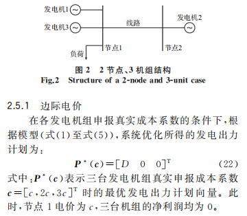 在完全競爭的電力市場中,各市場成員作為價(jià)格接受者,自身報(bào)價(jià)不會影響系統(tǒng)邊際價(jià)格,因此,以節(jié)點(diǎn)電價(jià)進(jìn)行市場交易和結(jié)算能夠?qū)崿F(xiàn)社會福利最優(yōu)。然而,現(xiàn)實(shí)中難以達(dá)到完全競爭市場,發(fā)電機(jī)組可以通過策略性報(bào)價(jià),以改變邊際電價(jià)從而最大化自身效益。因此,按照邊際電價(jià)交易和結(jié)算的電力市場不能抑制市場成員虛報(bào)高價(jià),難以實(shí)現(xiàn)激勵相容,甚至不能達(dá)到系統(tǒng)成本最小化的狀態(tài)。