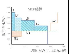 如圖所示,如果發(fā)電和負(fù)荷都按報(bào)價(jià)結(jié)算,則圖1中藍(lán)色陰影面積就是市場(chǎng)盈余。但如果市場(chǎng)采用MCP即邊際成本定價(jià)的方式,所有中標(biāo)的發(fā)電和負(fù)荷都按系統(tǒng)的統(tǒng)一邊際出清價(jià)結(jié)算,則市場(chǎng)收支平衡,無市場(chǎng)盈余。