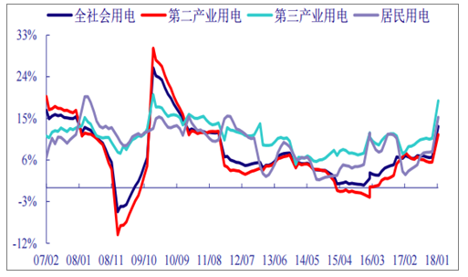 由于2018年春節(jié)假期位于2月中下旬,而2017年在1月份,疊加極寒天氣因素,1-2月份,全社會用電量10552億千瓦時,同比增長13 3%,增速同比提