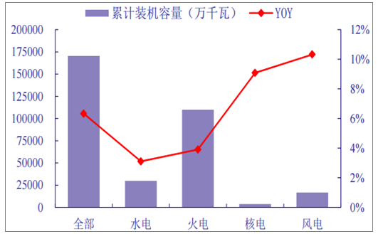 1-2月份,火電發(fā)電量增長推動全社會發(fā)電量增速得到較快提升。全國規(guī)模以上電廠發(fā)電量10455億千瓦時,同比增長11.0%,增速同比提高4.7個百分點。其中,火電8087億千瓦時,同比增長9.8%,增速同比提高2.8個百分點;水電1275億千瓦時,同比增長5.9%,增速同比增長10.6個百分點;核電、風電同比增長17.9%、40.1%。