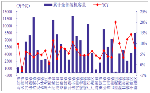 。1-2月份,全國新增裝機2356萬千瓦,同比增長46%。新增裝機排前三的地區(qū)為江蘇(295萬)、浙江(254萬)和山東(228萬),合計占全國比重33%。