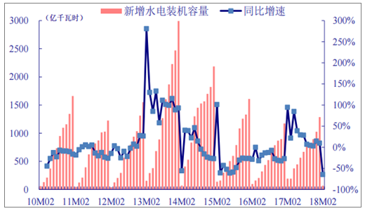 分省份來看,1-2月份,火電發(fā)電量增速前三位的地區(qū)有云南(54.3%)、福建(52.9%)、重慶(37.4%)。全國水電發(fā)電量前三位的省份為四川(380億千瓦時)、云南(261億千瓦時)和湖北(163億千瓦時),其合計水電發(fā)電量占全國水電發(fā)電量的63.1%。